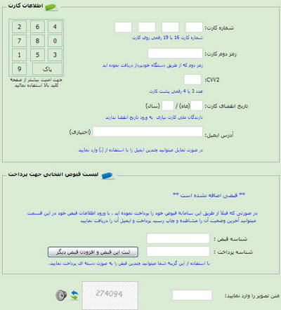 هنگام وارد کردن اطلاعات کارت بانکی خود سعی کنید نیمی از اعداد را با صفحه کلید کامپیوتر خود و نیم دیگر را با صفحه کلید مجازی سایت (بالای صفحه سمت چپ) وارد کنید. این کار به افزایش امنیت کمک میکند.